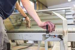 Les menuiseries Aluminium sont serties mécaniquement à l'aide d'équerres et d'une colle bi-composants.